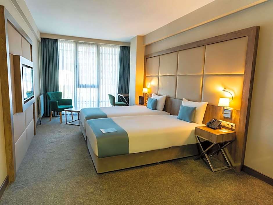 The spacious double room provides air conditioning, a tea and coffee maker, heating and a TV. The unit offers 1 bed.